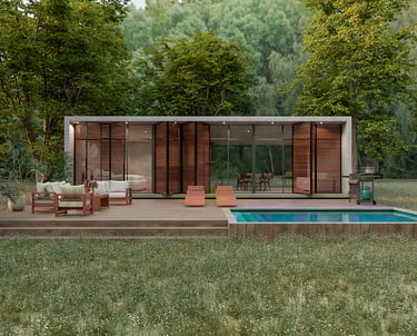 Cabaña básica extendida a 2 dormitorios mas y estudio